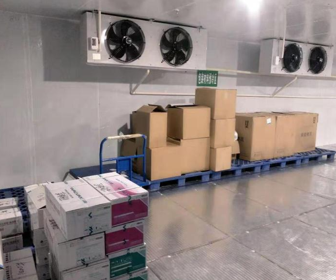 3、此外冷风机采用定做17台,风机运行稳定噪音小,送风距离远,使库内降温快,快速对流循环,从而达到每个角落温度均衡。